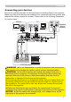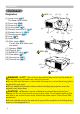 ŹDo not look into the lens or vents while the lamp is on, since the strong light is