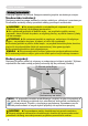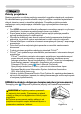 Rozwiązywanie problemów POWER TEMP LAMP SECURITY SHUTTER Opis Wentylator chłodzący nie pracuje. Miga na czerwono Miga na lub Wyłączony Wyłączony Wyłączony czerwono Świeci czerwono Wyłączyć zasilanie i pozwolić na ostygnięcie projektora przez okres przynajmniej 20 minut. Po dostatecznym ostygnięciu projektora, sprawdzić czy do wentylatora nie dostały się obce ciała, itp., oraz włączyć ponownie zasilanie.