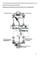 Minskar eller ökar man justeringsfötternas höjd, ändrar man projektionens läge