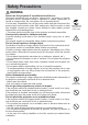 Safety Precautions (continued) NOTE About consumables. Lamp, LCD panels, polarizors and other optical components, and air filter and cooling fans have a different lifetime in each. These parts may need to be replaced after a long usage time. • This product isn’t designed for continuous use of long time.