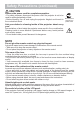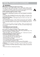 Safety Precautions (continued) CAUTION Remove the power cord for complete separation. • For safety purposes, disconnect the power cord if the projector is not to be used for prolonged periods of time. • Before cleaning, turn off and unplug the projector. Neglect could result in fire or electrical shock. Disconnect the plug from the power outlet. Ask your dealer to cleaning inside of the projector about every year. Accumulations of dust inside the projector cause result in fire or malfunction.