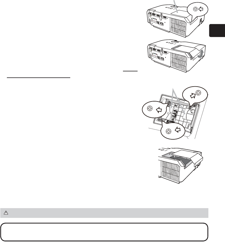 Løsn skruen (merket med pil) til lampedekslet og skyv