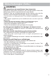 Sikkerhetsregler (forts.) ADVARSEL Vær oppmerksom på prosjektørens høye temperatur. Apparatet blir veldig varmt når lampen er tent. Det kan resultere i brann eller forbrenninger. Utvis stor varsomhet når det er barn tilstede. Objektivet, viften og ventilasjonsåpninger må ikke berøres under eller like etter bruk, det kan forårsake forbrenninger. Sørg for god ventilasjon. • Se til at det er en klaring på minst 30 cm mellom prosjektøren og f.eks. vegger.