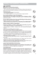 Safety Precautions (continued) CAUTION Remove the power cord for complete separation. • For safety purposes, disconnect the power cord if the projector is not to be used for prolonged periods of time. • Before cleaning, turn off and unplug the projector. Neglect could result in fire or electrical shock. Disconnect the plug from the power outlet. Ask your dealer to cleaning inside of the projector about every year. Accumulations of dust inside the projector cause result in fire or malfunction.