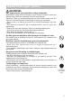 Sikkerhetsregler ADVARSEL Bruk ikke prosjektøren hvis det oppstår problemer. Unormale tilstander som f.eks. røyk, rar lukt, ikke noe bilde, ingen lyd, for mye lyd, ødelagt hus, elementer eller kabler, eller hvis væske eller andre fremmedlegemer har trengt inn i apparatet, etc., kan forårsake branntilløp eller elektrisk støt. Hvis noen av de ovennevnte tilstandene skulle forekomme, må apparatet slås av og støpslet trekkes ut av stikkontakten.