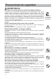 Precauciones de seguridad ADVERTENCIA No utilice nunca el proyector cuando haya algún problema. La operación en condiciones anormales tales como emisión de humos, olores extraños, ausencia de imagen, ausencia de sonido, sonido excesivo, daños en la carcasa, cables o elementos, entrada de líquidos o cuerpos extraños, etc., puede ocasionar incendio o descargas eléctricas.