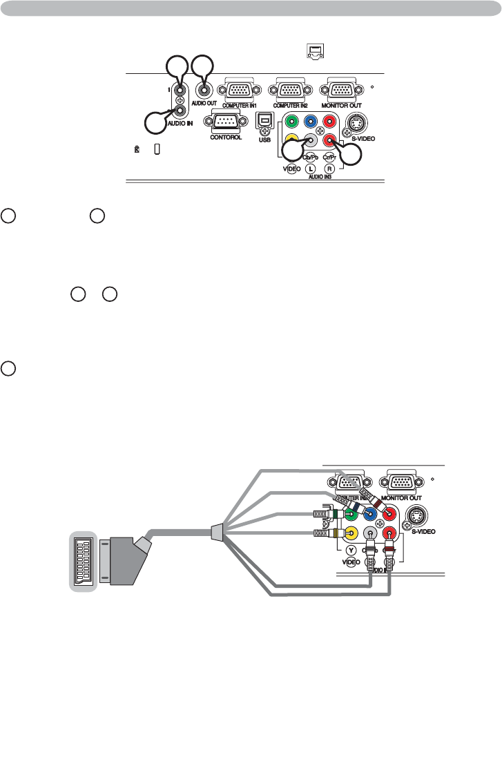 To input SCART RGB signal to the projector, use a SCART to RCA cable.