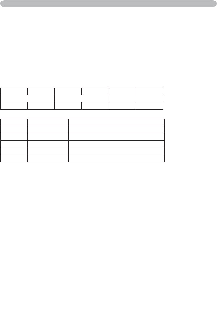 (1) Send the following setting code from the PC to the projector.
