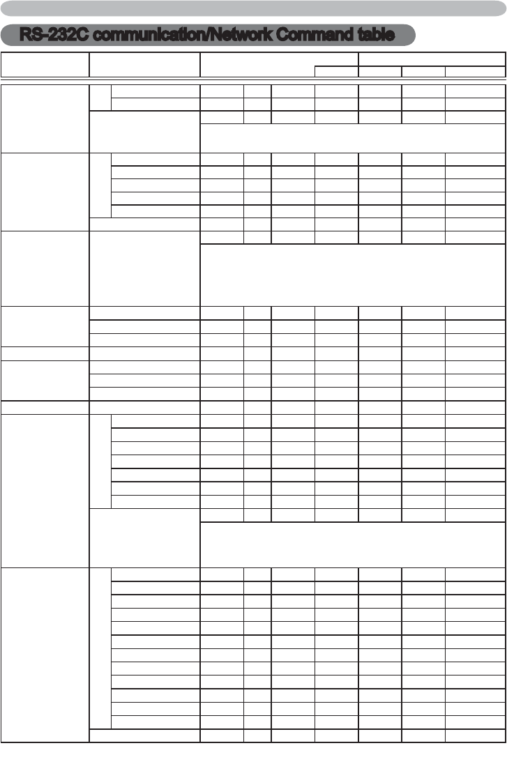 RS-232C communication/Network Command table