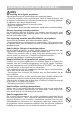 Säkerhetsföreskrifter (fortsätter) NOTE Angående förbrukningsdelar. Lampa, LCD-panel, polarisatorer och annan optisk utrustning, och luftfilter och kylfläktar har alla olika livslängd. Dessa delar kan komma att behöva bytas efter längre tids användning. • Denna produkt är inte designad för långvarigt kontinuerligt användande.
