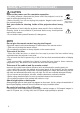 Safety Precautions (continued) CAUTION Remove the power cord for complete separation. • For safety purposes, disconnect the power cord if the projector is not to be used for prolonged periods of time. • Before cleaning, turn off and unplug the projector. Neglect could result in fire or electrical shock. Disconnect the plug from the power outlet. Ask your dealer to cleaning inside of the projector about every year. Accumulations of dust inside the projector cause result in fire or malfunction.