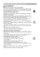:<62.,( 1$3,ĉ&,( :<62.$ 7(03(5$785$ :<62.,( &,ĝ1,(1,( =$*52į(1,( ► Projektor wyposażony jest w lampę rtęciową o wysokim ciśnieniu. Lampa może eksplodować, emitując głośny huk lub spalić się, jeśli zostanie uderzona lub zarysowana, przenoszona w stanie nagrzania albo zużyta po pewnym czasie eksploatacji. Należy zwrócić uwagę, że każda lampa posiada inną żywotność, niektóre egzemplarze mogą, więc eksplodować lub przepalać się wcześniej, zaraz po rozpoczęciu ich użytkowania.