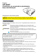 &RQÀJXUDomR Conectando dispositivos (continuação) Para usar a função MIU (Multi Information processing Unit) ligue pelo menos os dispositivos desenhados na ilustração seguinte para o projetor. PC LAN Armazenagem USB BA TT ER Y Cartão SD SD CA RD AVISO ►Não desmonte ou modique o projetor e acessórios. ►Tenha cuidado em não danicar os cabos e não use cabos danicados. PRECAUÇÃO ►Desligue todos os dispositivos e retire os cabos de alimentação antes de ligá-los ao projetor.
