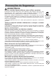 Precauções de Segurança (continuação) PRECAUÇÃO Retire o cabo eléctrico para uma separação completa. • Para efeitos de segurança, desligue o cabo eléctrico se o projector não for utilizado durante períodos prolongados de tempo. • Antes de limpar, desligue a energia e retire a ficha da tomada. Qualquer Retire a ficha da tomada descuido pode provocar incêndios ou choques eléctricos. Peça ao representante para limpar no interior do projector anualmente. eléctrica.