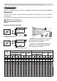 Consulte as ilustrações e tabelas abaixo para determinar o tamanho do ecrã e a distância