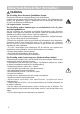 Innehåll Innehåll Innehåll . . . . . . . . . . . . . . . . . . 2 Försiktigt. . . . . . . . . . . . . . . . . . 3 1. Huvudfunktioner . . . . . . . . . . 5 1.1 Live Mode (Projektbilder från PC) . . 5 1.2 Snabb anslutning till ditt nätverk . . 6 1.3 Konguration och kontroll via en webbrowser . 7 1.4 Presentation UTAN PC (Visar bilderna lagrade på ett minnesmedia). . . 8 2. Anslutning av annan utrustning och nätverksinställningar. . . . . 10 2.1 Nödvändiga förberedelser av utrustningen . . 10 2.