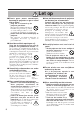 Waarschuwing ■ Geen water of andere vloeistoffen dichtbij de projector zetten. Zet geen vaas met bloemen, geen thee- of koffiekop of drinkglazen, kor tom geen enkele vloeistof bovenop of in de buurt van de projector. Als er vloeistof in het apparaat komt, is er kans op brand of een elektrische schok. ■ Alleen aansluiten op een gewoon wandstopcontact. Gebruik het apparaat uitsluitend op gewone lichtnetvoeding. Andere soorten stroomvoorziening kunnen gevaar voor brand of een elektrische schok veroorzaken.