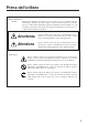 Avvertenze ■ Non posizionare il proiettore in un contenitore con liquido. Non appoggiare vasi di fiori, fioriere, contenitori, cosmetici, liquidi tipo acqua, ecc. sulla parte superiore del proiettore. Eventuali versamenti potrebbero essere causa di incendi o scossa elettrica. ■ Utilizzare solamente l’alimentazione elettrica indicata. Utilizzare solamente l’alimentazione elettrica indicata. L’uso di qualsiasi altra alimentazione elettrica potrebbe essere causa di incendi o scossa elettrica.
