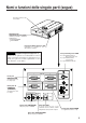 Esempio di impostazione del sistema Computer (di tipo Notebook) Ingresso a CA 1 RGB IN 2 S-VIDEO IN VIDEO IN CONTROL RGB OUT AUDIO IN L MONO R AUDIO IN 1 2 AUDIO OUT USB Computer (di tipo desktop) Videoregistratore con presa jack S Videoregistratore Altoparlanti (con amplif. incorporato) Attenzione Schermo di visualizzazione Prima di iniziare, disattivare tutti i dispositivi. Prima di iniziare, far riferimento al manuale di istruzioni di ogni dispositivo.