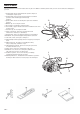 !SSEMBLY PROCEDURES 7!2.).' .EVER TRY TO START ENGINE WITHOUT SIDE CASE SECURELY FASTENED 2EMOVE CHAIN BAR CLAMP NUTS 2EMOVE THE SIDE CASE AS PINCHING THE REAR PART OF THE SIDE CASE &IG )NSTALL THE SPIKED BUMPER )F SO EQUIPPED TO THE UNIT WITH CHAIN BAR CLAMP NUT &IG )NSTALL THE CHAIN BAR ONTO THE BOLTS THEN PUSH IT TOWARD THE SPROCKET AS FAR AS IT WILL GO -AKE SURE THAT THE TENSIONER üTS INTO THE HOLE OF THE BAR &IG .