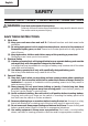 English CONTENTS Page IMPORTANT SAFETY INFORMATION .............. 3 MEANINGS OF SIGNAL WORDS ...................... 3 SAFETY .................................................................... 4 GENERAL SAFETY RULES – FOR ALL BATTERY OPERATED TOOLS ..................... 4 SPECIFIC SAFETY RULES AND SYMBOLS ....... 6 IMPORTANT SAFETY INSTRUCTIONS FOR BATTERY CHARGER ........................... 8 IMPORTANT SAFETY INSTRUCTIONS FOR USE OF THE BATTERY AND BATTERY CHARGER ......................................
