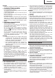 English 6. Check the rotational direction (Fig. 5) The bit rotates clockwise (viewed from the rear side) by pushing the R-side of the push button. The L-side of the push button is pushed to turn the bit counterclockwise. (The L and R marks are provided on the body.) CAUTION Always use the impact drill with clockwise rotation, when using it as an impact drill. 7. Fixing the side handle (Fig. 6) Attach the side handle to the mounting part. Rotate the side handle grip in a clockwise direction to secure it.