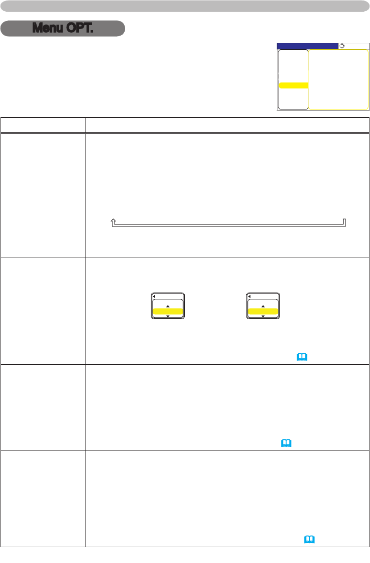 Selecteer een onderdeel met de pijltoetsen ▲/▼ op de projector