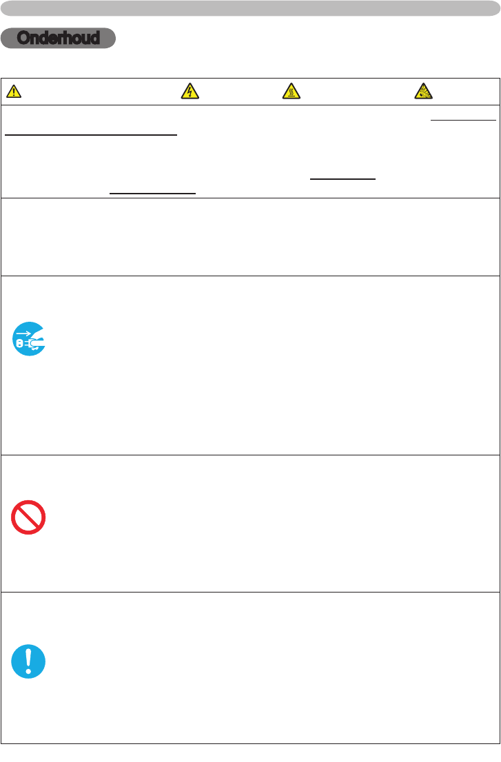 ervan. Probeer dus niet de projector te reinigen of de lamp zelf te vervangen.