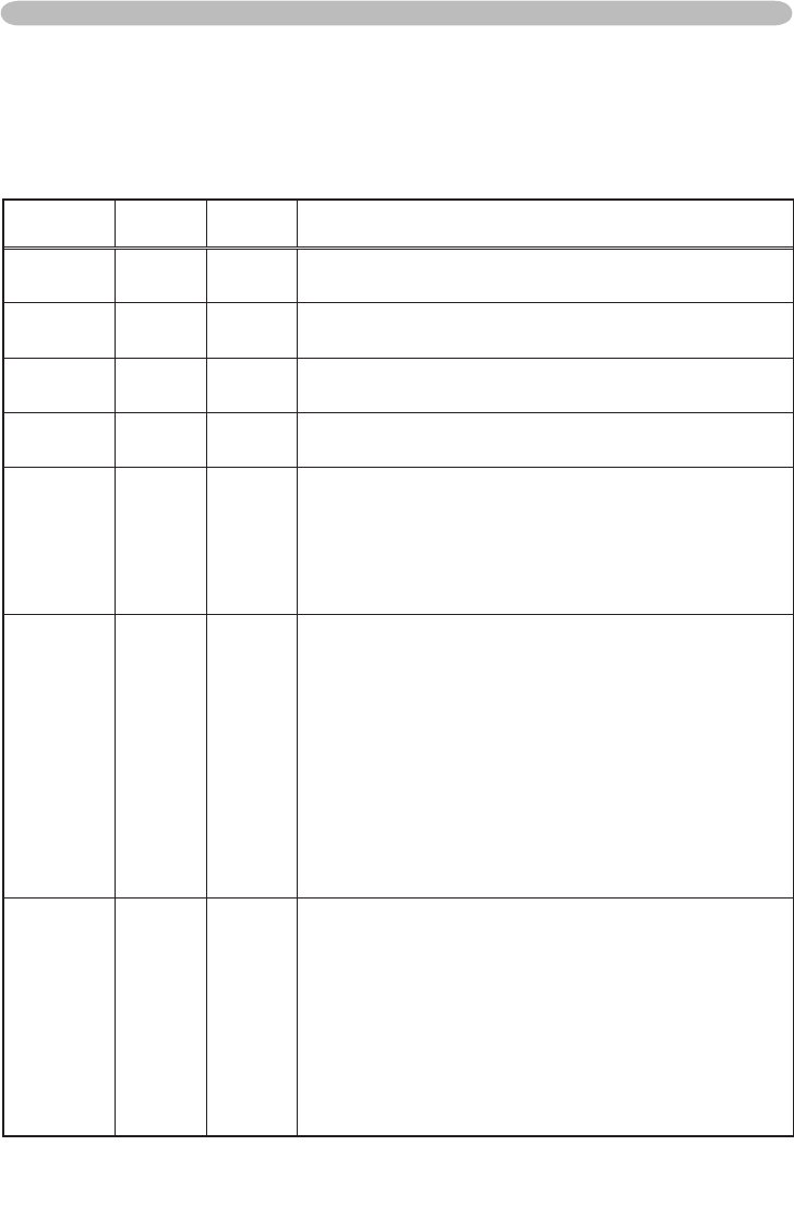 In de onderstaande tabel wordt uitgelegd wat het inhoud als de POWER indicator, de LAMP indicator