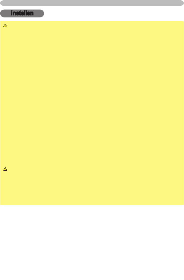 • Plaats de projector niet op een onstabiel, schuin of vibrerend oppervlak zoals