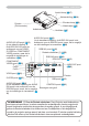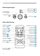 Namen onderdelen Namen onderdelen Projector Bedieningsknoppen ( Ì Afstandsbedieningssensor ( Lampdeksel ( 51) (Lamp eenheid zit binnen.) Zoom ring ( 19) Focus ring ( 19) Ventilator ( Veiligheidsstangetje ( 10) (Gebruik voor aansluiten van een commerciële antidiefstalketting of draad.) 9) Elevator-knop ( 17) Lenskapje ( 16) Luidspreker 7) Lens ( 6) 3) Voorkant rechts Afstelvoetje ( 9) $IGHNNDS OXFKW¿OWHU ( 52) /XFKW¿OWHU HQ LQODDW ventilator zitten binnen.