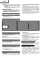 English PRECAUTIONS ON USING IMPACT DRILL 1. Wear ear protectors with impact drills. Exposure to noise can cause hearing loss. 2. Use auxiliary handles supplied with the tool. Loss of control can cause personal injury. 3. Before drilling into walls, ceilings or floors, ensure that there are no concealed power cables inside. 4. When boring concrete or similar hard materials in IMPACT mode, set the bit rotation switch lever to the R-side. (Fig. 8) 5.