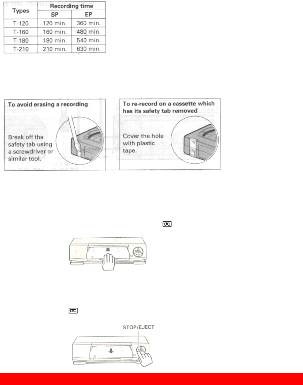 is pressed. Be sure to check the safety tab before inserting a cassette.