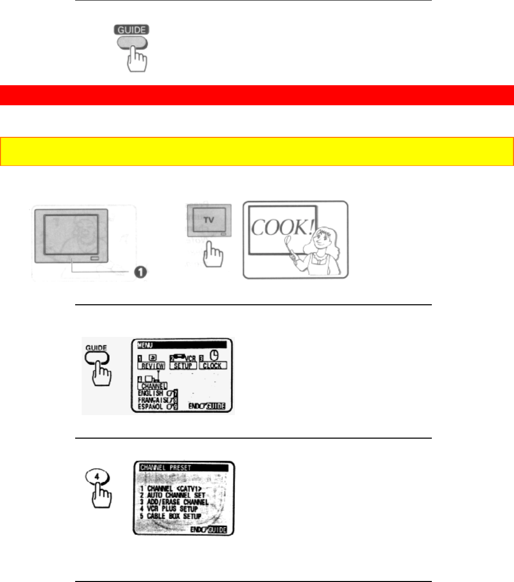 Note: This setup should be performed if you receive all channels through a cable box (Hookups [E], [F] or|