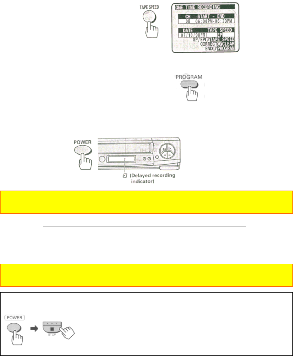Important: Your timed recording settings take effect when you turn off the power on the VCR.