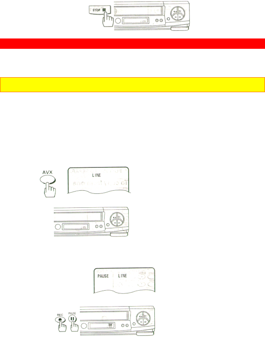2 Press the REC, then PAUSE buttons on the VCR remote control. The