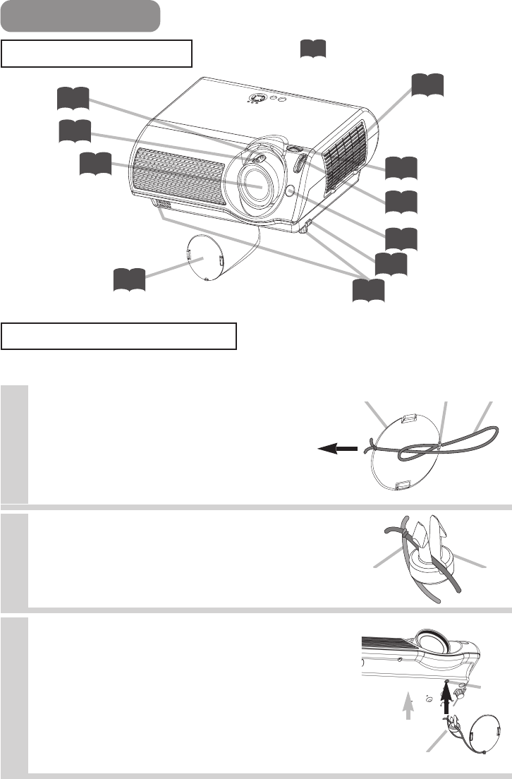 To avoid losing, please fasten the lens cap to the projector using the strap.