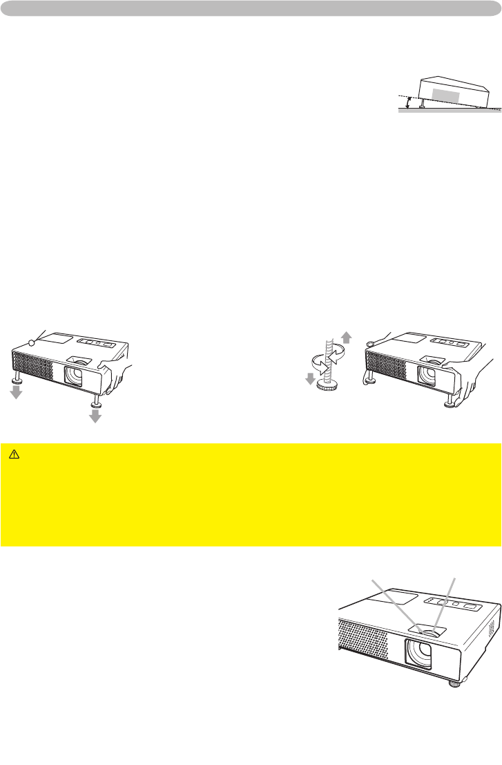 ►Kantel de projector niet anders dan het omhoog brengen van de voorkant