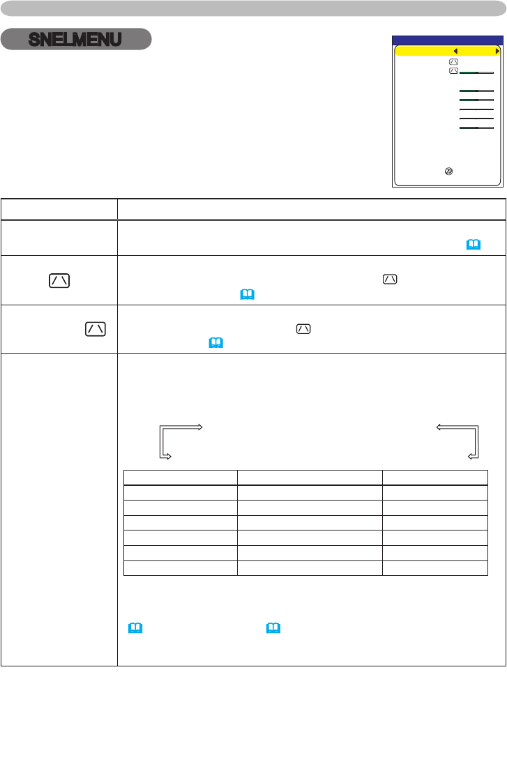knoppen wordt de verticale keystone distortie gecorrigeerd.