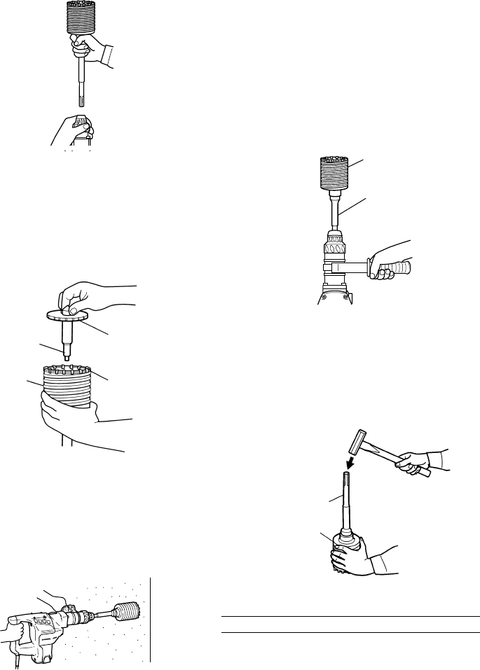 䡬 Remove the core bit shank from the rotary hammer,