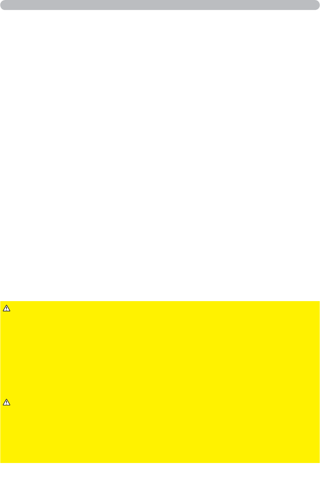 ►Avoid wetting the projector or inserting liquids in the projector. It could result in