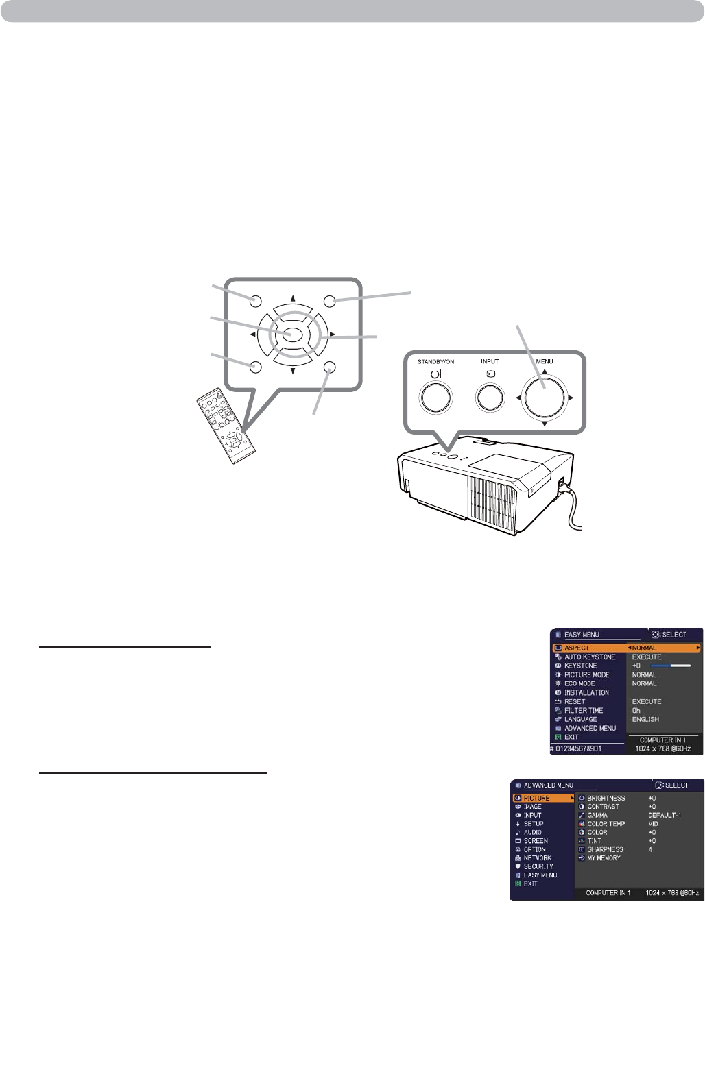 or ADVANCED) will appear. EASY MENU has priority to appear just after