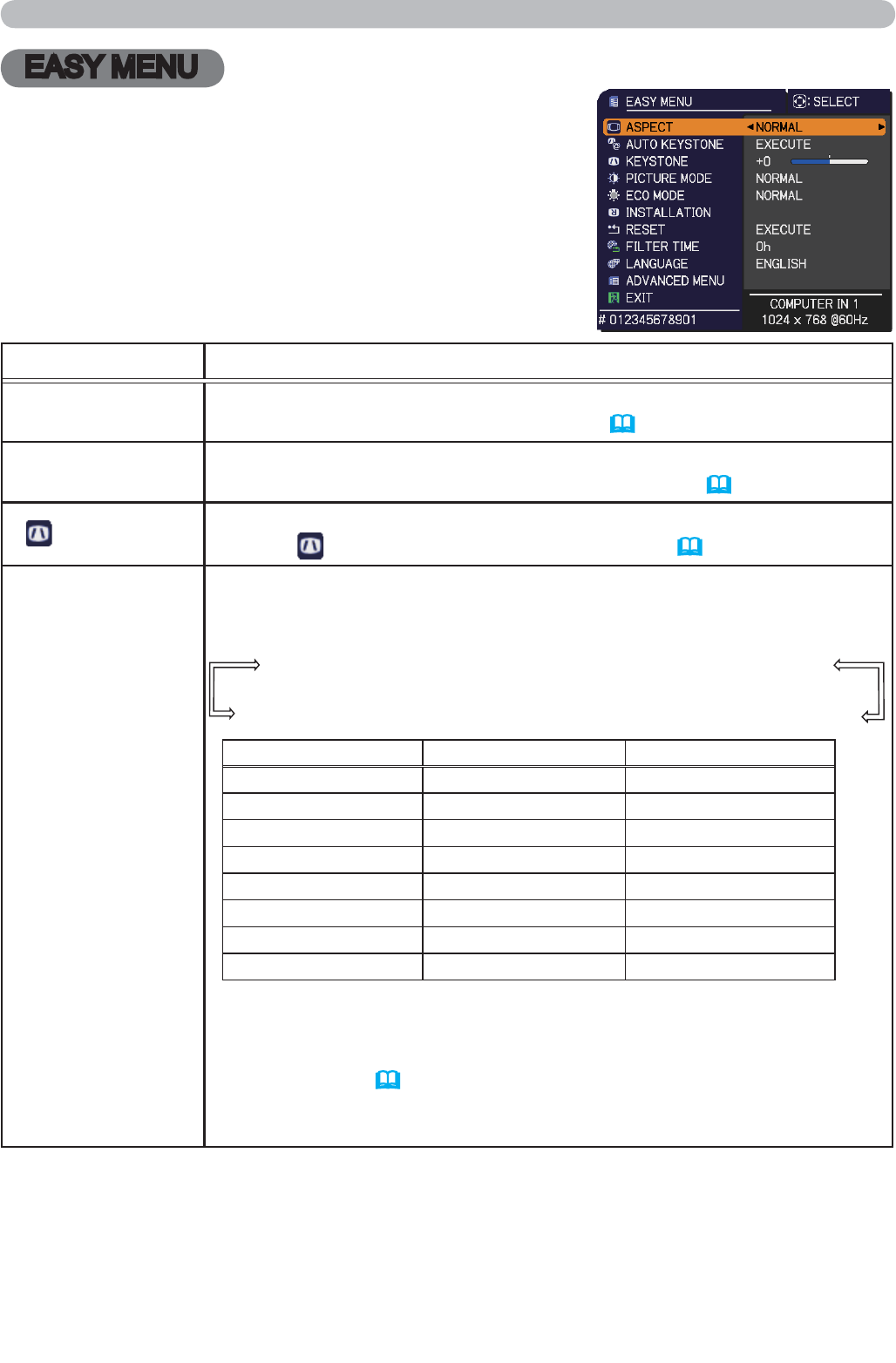 Using the ◄/► buttons corrects the vertical keystone distortion.
