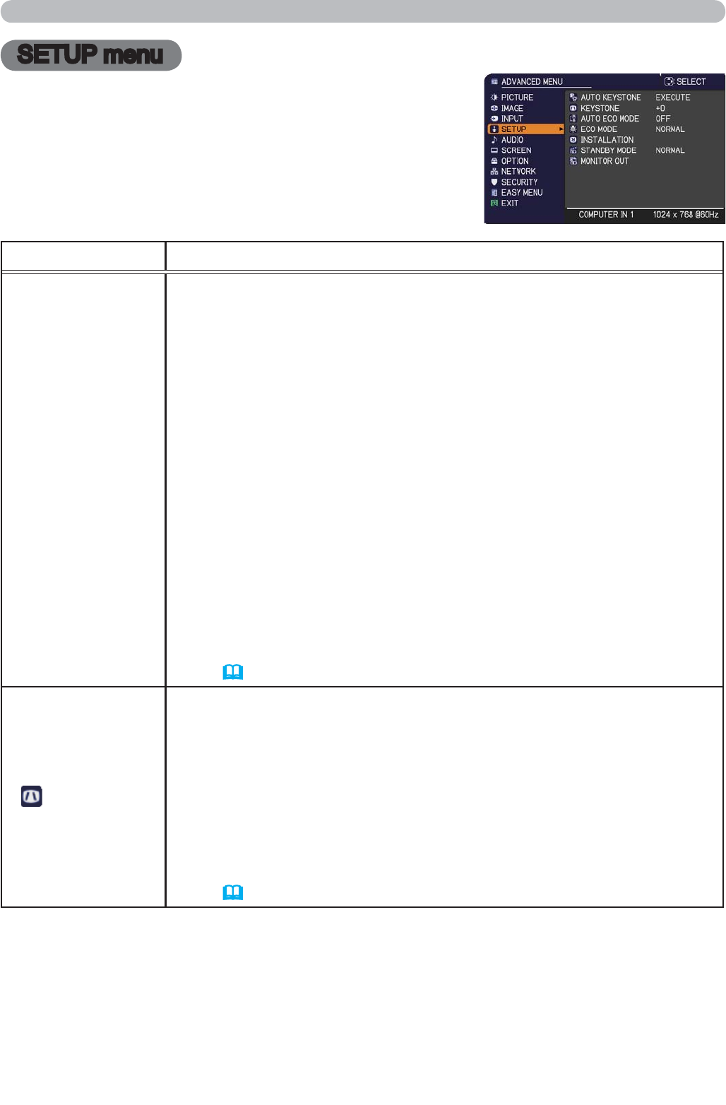 Using the ◄/► buttons corrects the vertical keystone distortion.