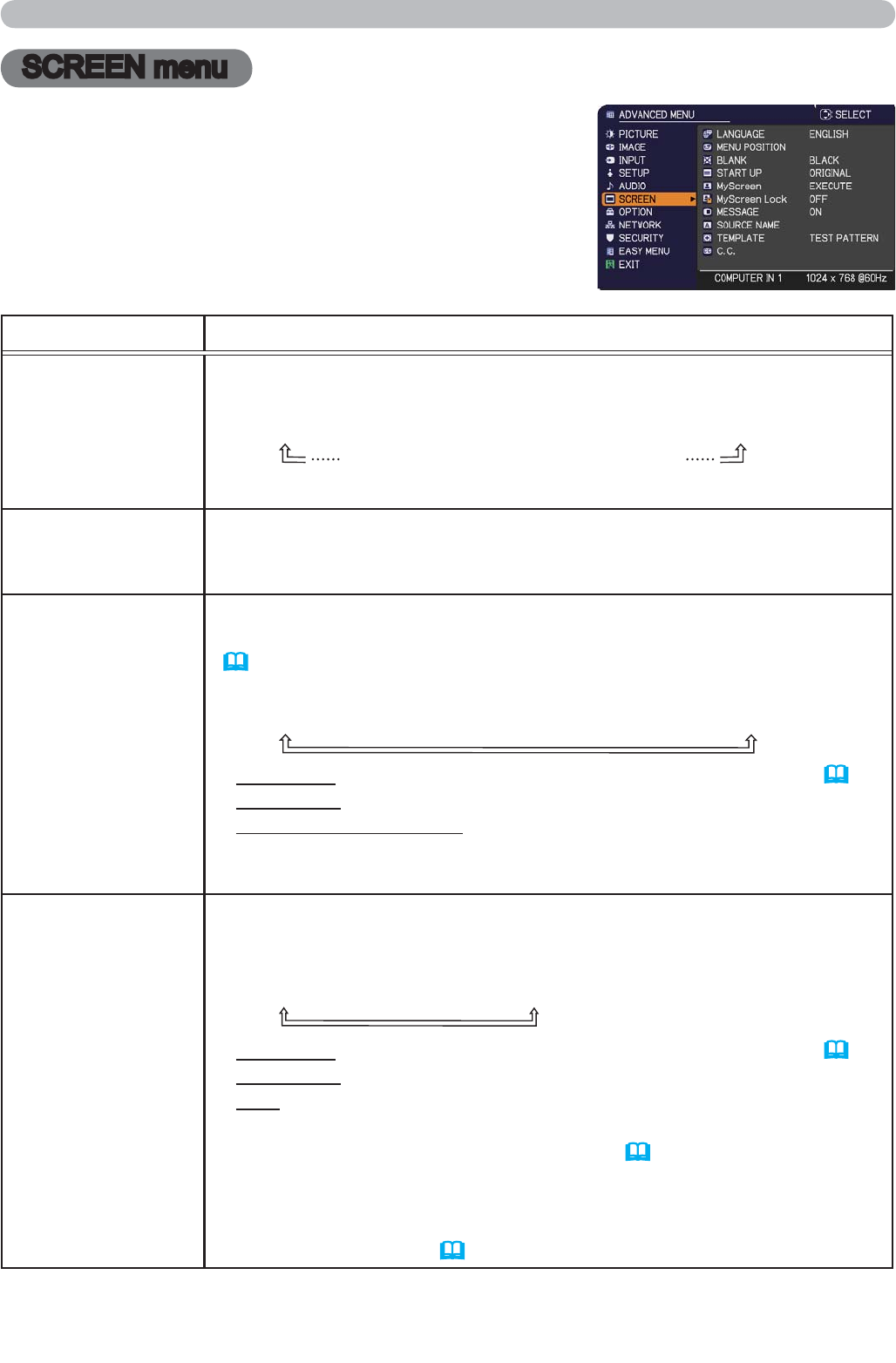Using the ▲/▼/◄/► buttons adjusts the menu position.