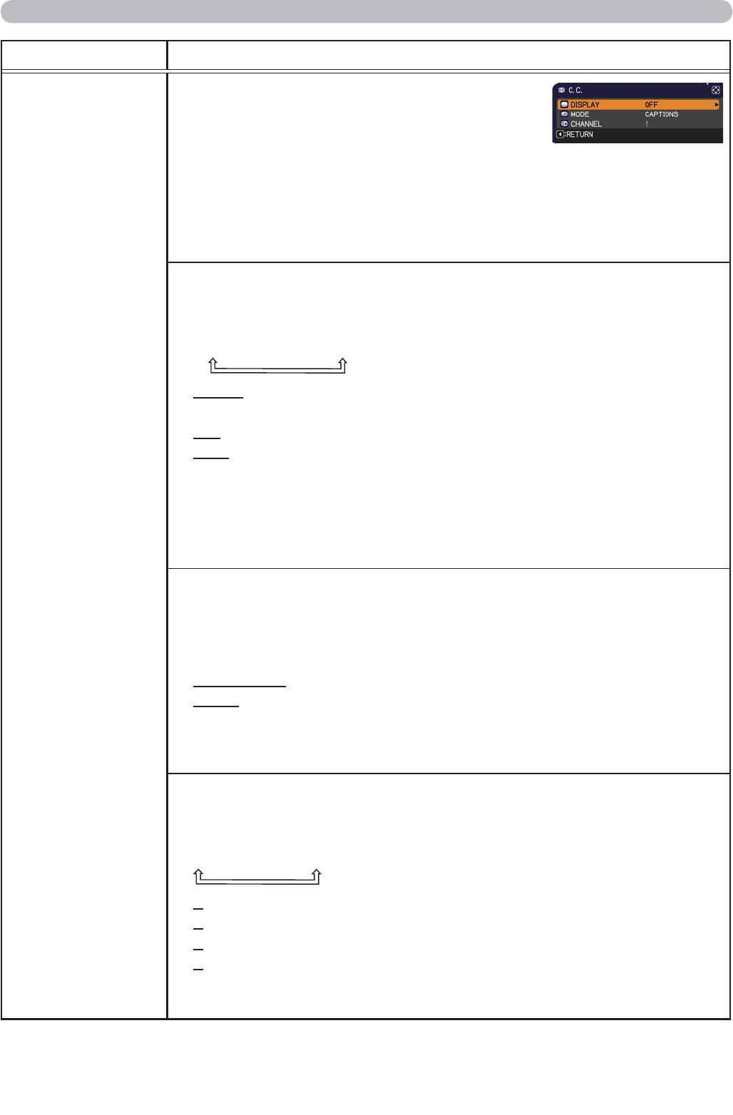 Select Closed Caption CHANNEL from following options using ▲/▼