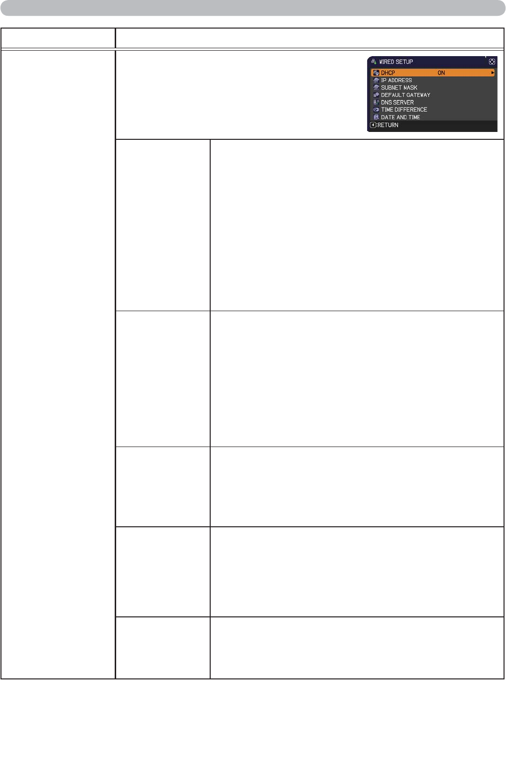 • When the “DHCP” setting changes to “ON”, it
