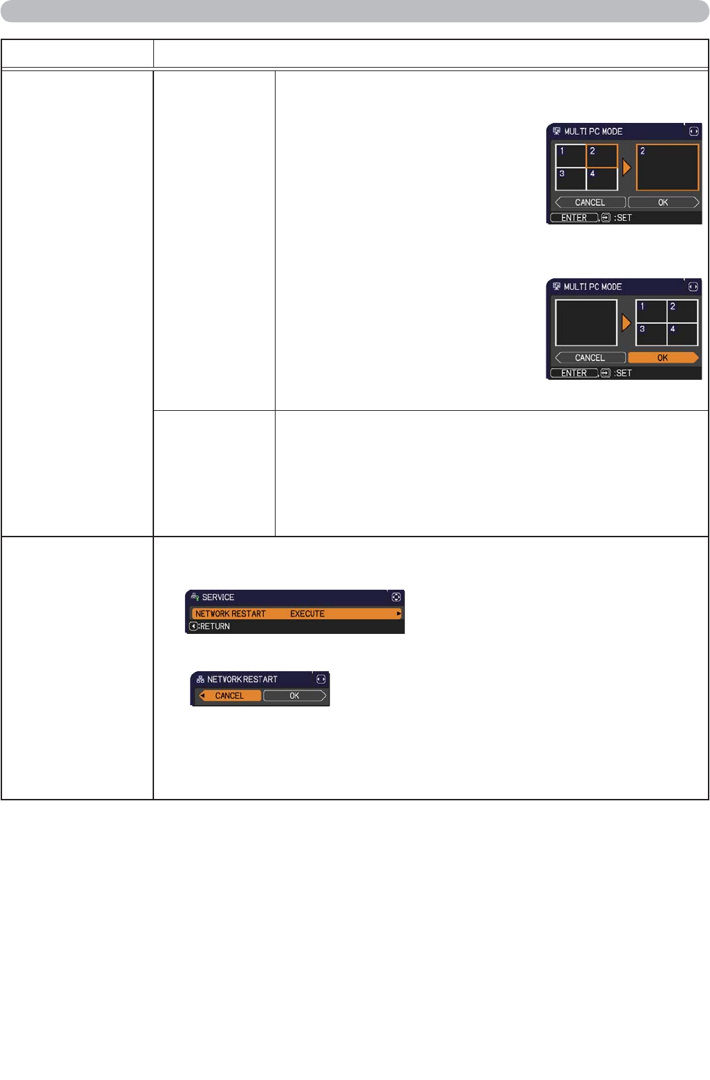 After selecting NETWORK RESTART EXECUTE, NETWORK menu