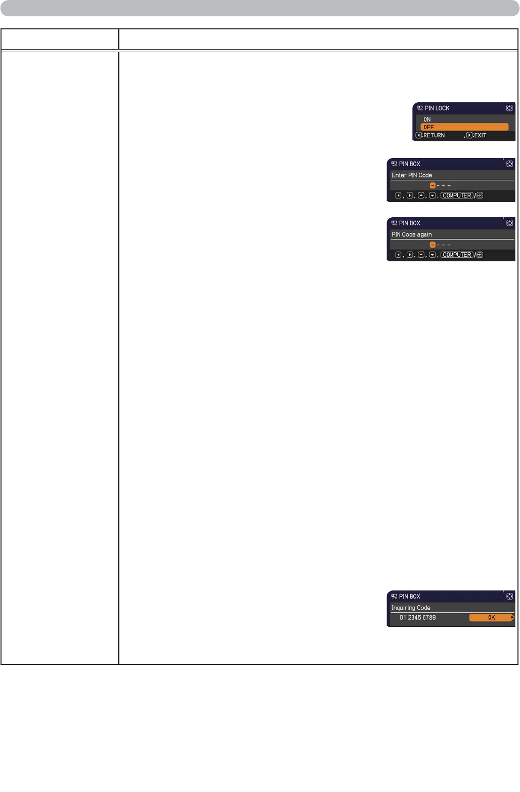 If an incorrect PIN code is input 3 times, the projector will turn off. Afterwards