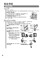 關於電源插頭及接地 3 ● 設置後直接就可插上電源插頭。 ● 請用獨立的插座。 (電源 220 230V 額定電流 15A 以上) 事 前 準 備 為了防止萬一觸電,建議實施接地。 螺絲 4 枚 安全帶 (與安全帶同裝) ● 如設置地方特別潮濕,請與經銷店洽商,接地線或安裝漏電開關。 ● 另購部件:「地線(2.5m)」(產品型號 .